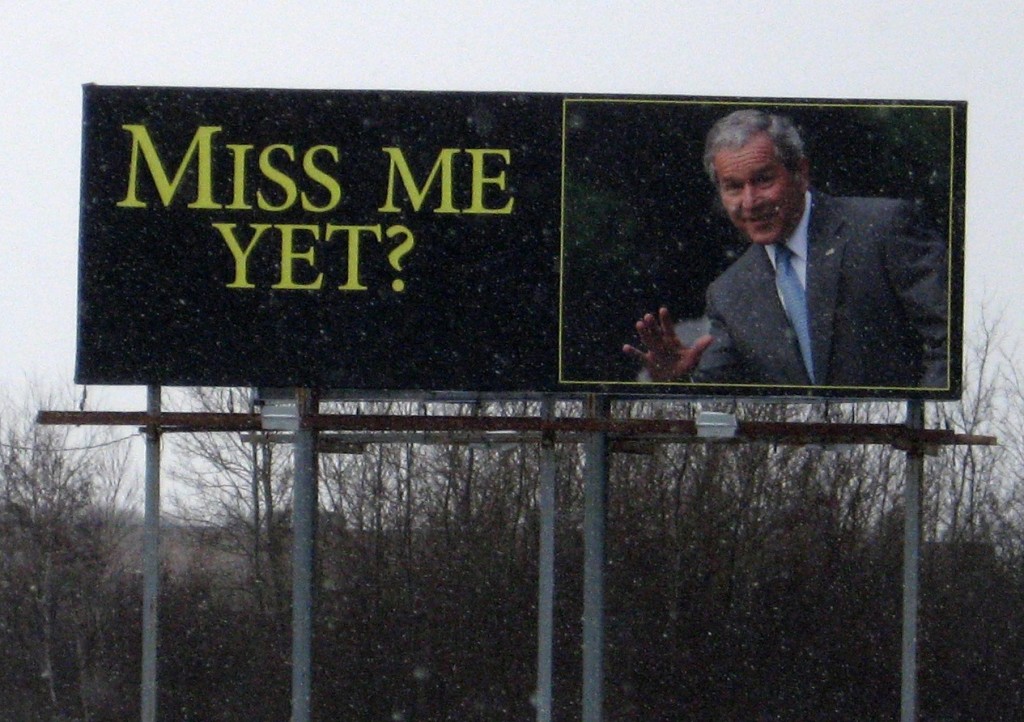 Minnesota got a special treat recently when a billboard depicting a jolly-looking former Pres. George W. Bush appeared over Interstate 35 asking, “Miss me yet?”