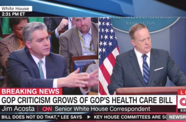 “If Jim Acosta reported on Jim Acosta the way he reports on us, he’d say he hasn’t been very honest,” Spicer said. ‘I think he’s gone well beyond the role of reporter and steered into the role of advocate. He’s the prime example of a [reporter in a] competitive, YouTube, click-driven industry,”