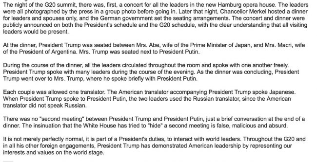 Trump & Putin met on sidelines of G20 leaders+spouses dinner on July 7th, NSC spox confirms. They spoke in same room after dinner