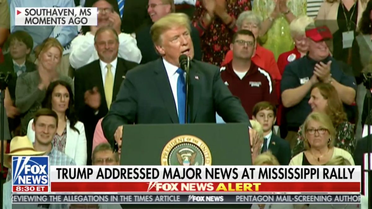 President Donald Trump mockingly riffed on Christine Blasey Ford‘s testimony at his Mississippi rally tonight, shocking a lot of people: