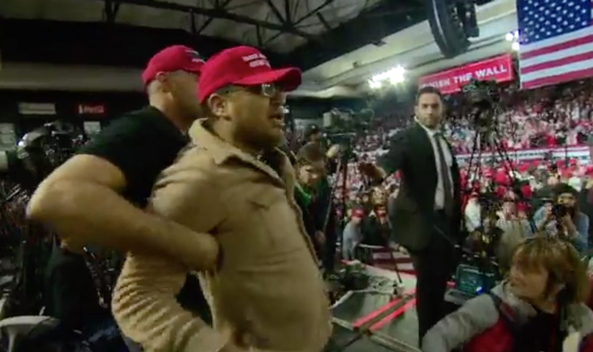The moment during Trump El Paso #MAGA rally last night when BBC cameraman Ron Skeans was shoved on the media platform.