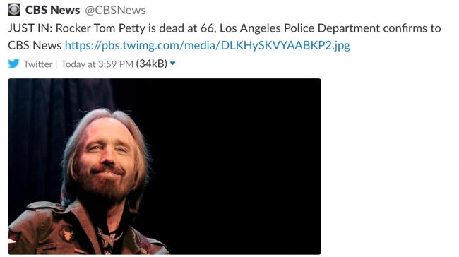 Next came the premature announcement that Rock and Roll legend Tom Petty had passed away, even though he was still alive.
