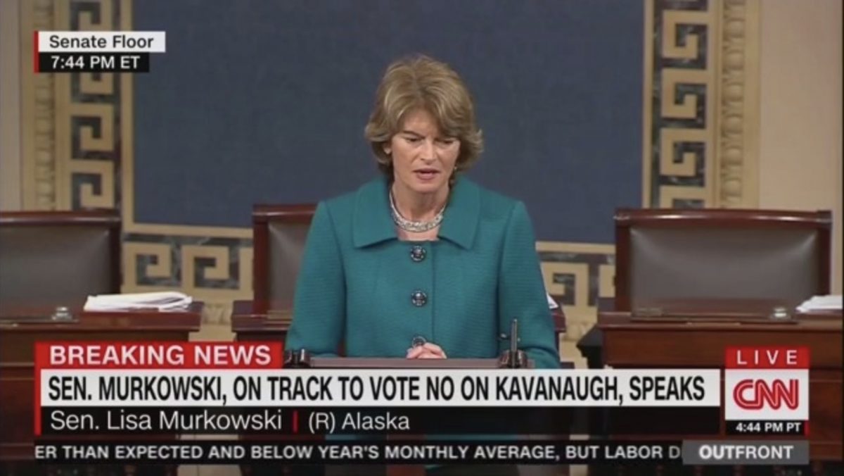Later the same day, Murkowski said this about her reasons why she could not vote ‘yes’: “After the hearing that we all watched last week, last Thursday, it became clear to me, or was becoming clearer, that that appearance of impropriety has become unavoidable.”