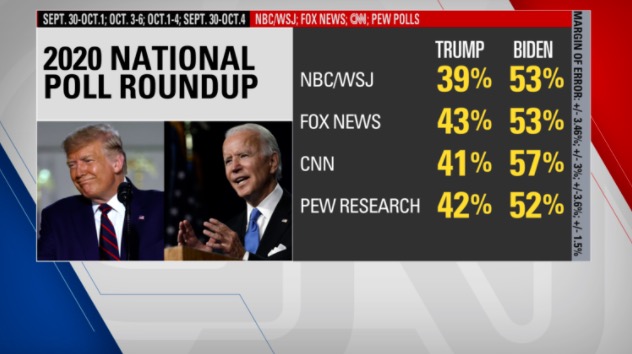 Bottom line: Both the national and state polls are telling a similar story. It’s one of Joe Biden holding a comfortable lead with just about three weeks until the final day of voting. There’s not a single poll I can point to either nationally or in a battleground state that reads differently.