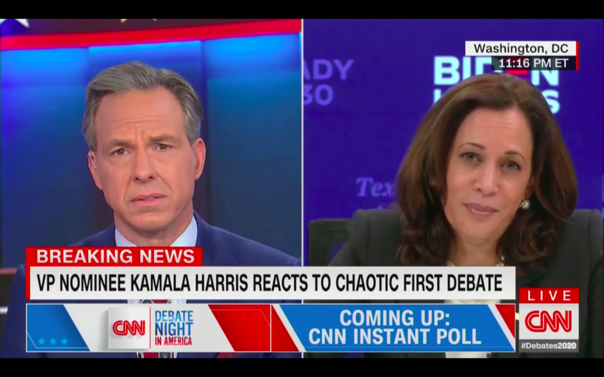 “Very simple question, after what went down this evening, do you think Joe Biden should participate in a second or third debate?” CNN’s Jake Tapper asked Harris point-blank.