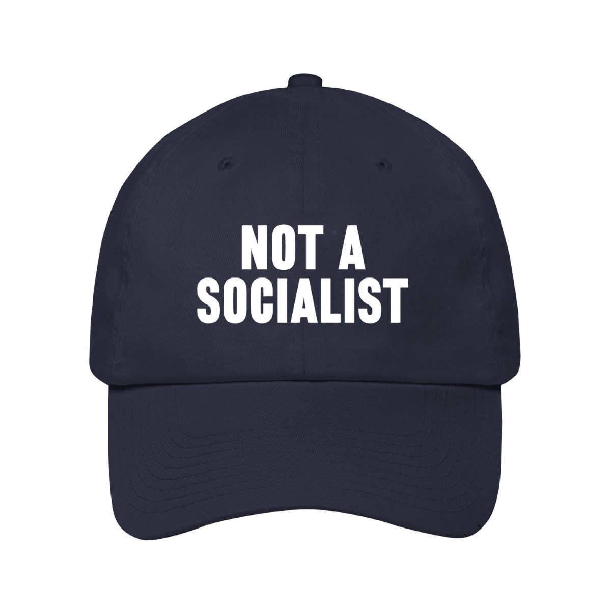 The hat is available to preorder and the item description notes, “Twice as many Americans have a positive impression of capitalism than socialism. (Pew Research 2019)”
