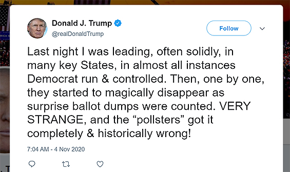 People like: Kari Lake. And like Donald Trump, who attacked the overnight counting immediately in 2020.