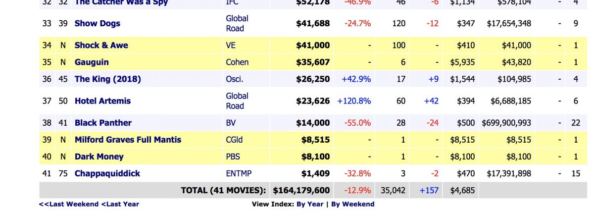According to Box Office Mojo, for the weekend of July 13-15th, Shock and Awe grossed a measly $41,000.