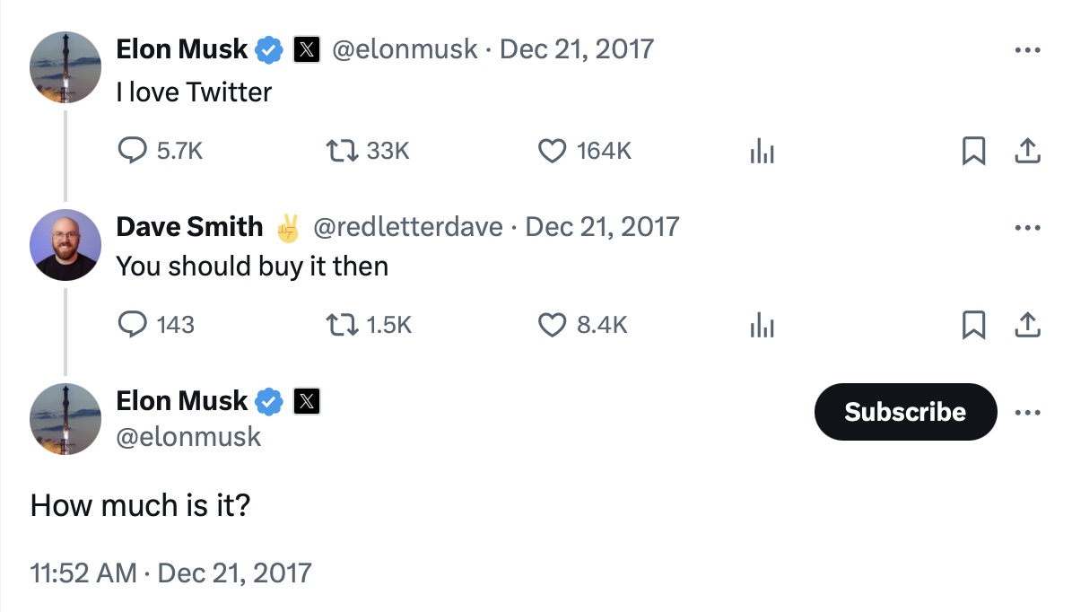 Years before Musk purchased Twitter in 2022 for $44 billion, he asked a similar question about the cost of the social media platform: