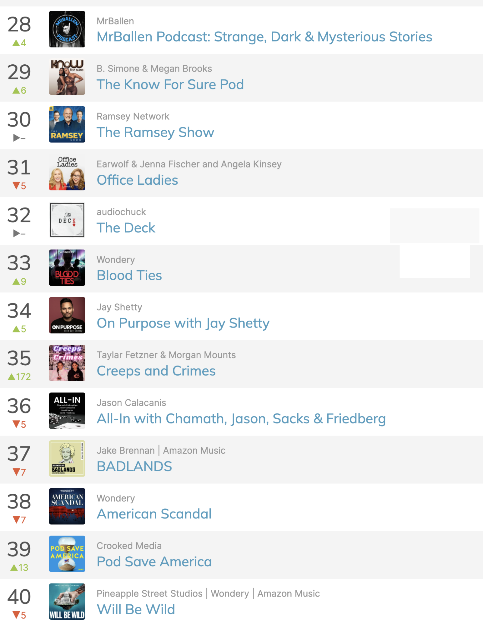 Top 50 Podcasts in America This Week