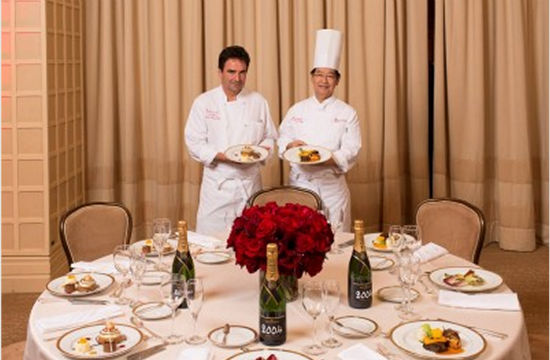 Executive Pastry Chef Thomas Henzi and Executive Chef Suki Sugiura created a three-course menu for the fête: an uber-fussy sounding first course of grilled artichoke on frisee served with fennel-tomato-lemon mousse, Kabocha-pumpkin-smoked dried tomato tart, and pepper-honey goat cheese; a surf-and-turf second course of smoked flat-iron steak and Pacific sea bass; and cappucino mousse cake for dessert. (We suggest a less mid-1990s-christening-inspired dessert option for your guests. Be creative!) Oh, and don’t forget the 2004 Grand Vintage Moet et Chandon champagne. That’s what the stars will be swilling that night, anyway.