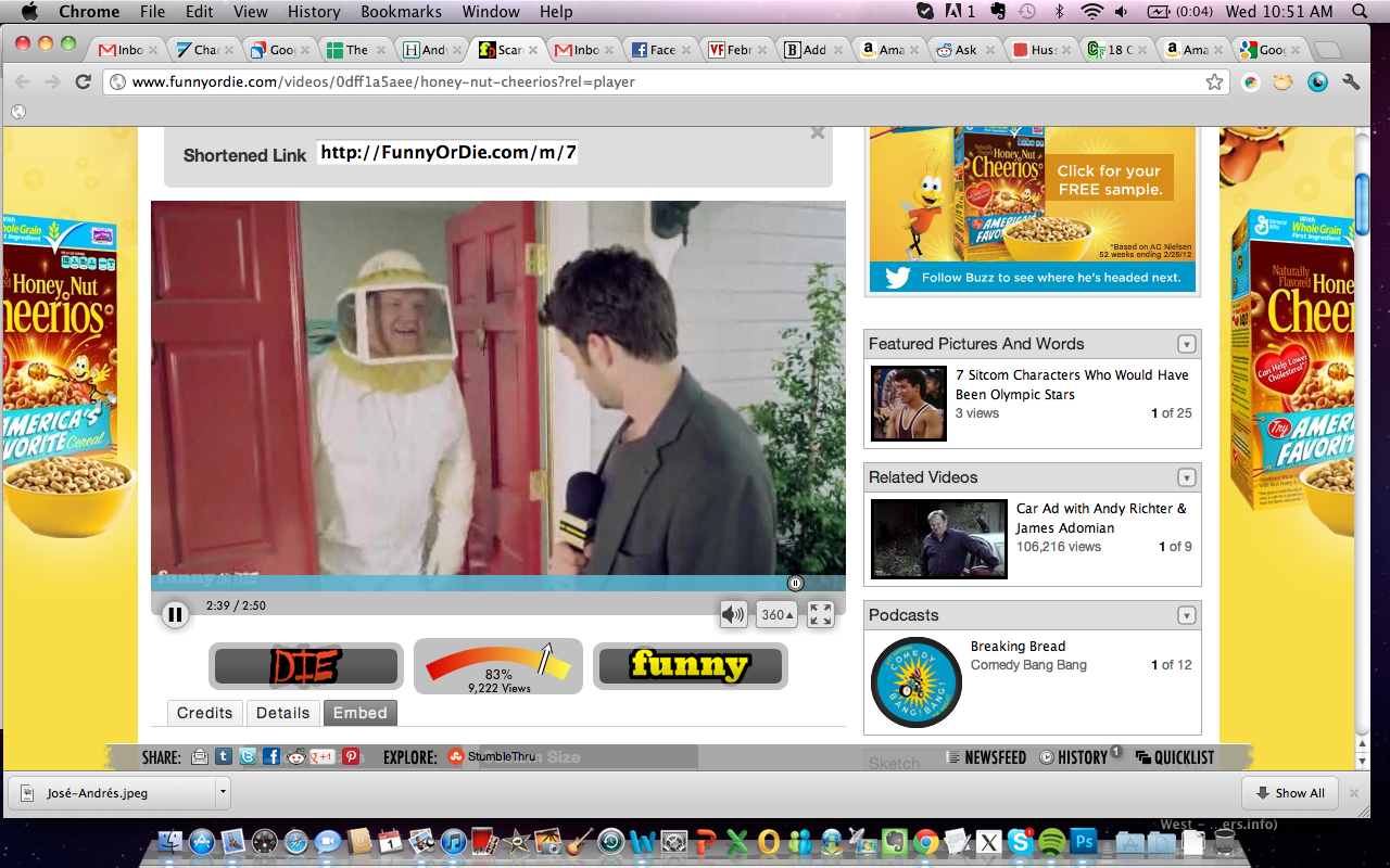 Bees are freaky little death machines who lure you in with the promise of pollinating your crops and feeding you sweet, sweet honey, and then sting you to death with their butts. (That, we believe, is the genesis of the true horror of bees: they can kill you by using a body part reserved for flatulence jokes.) Which is why we don’t understand why Honey Nut Cheerios put a bee on the cover of its box, and, apparently, neither does Andy Richter, according to this video for Funny Or Die.