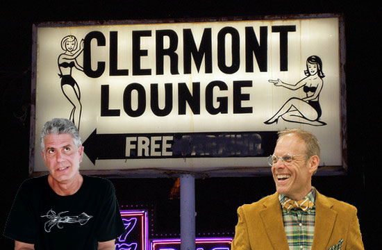 Yes, this is a true story, unless Bourdain and Alton Brown are secretly punking us with these tweets from the legendary Clermont Lounge, Atlanta’s oldest and most kinkily magical strip club (and the first strip club we’ve ever seen with a Wikipedia page):