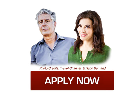 While the working title of Anthony Bourdain and Nigella Lawson’s cooking competition series is still “New Cooking Show” (or, sometimes, “Exciting New Cooking Show), the as-of-yet unnamed series has already begun casting. Three open call audition dates have been listed in New York, Los Angeles, and Chicago, and it looks like the audition process is similar to the MasterChef set-up.