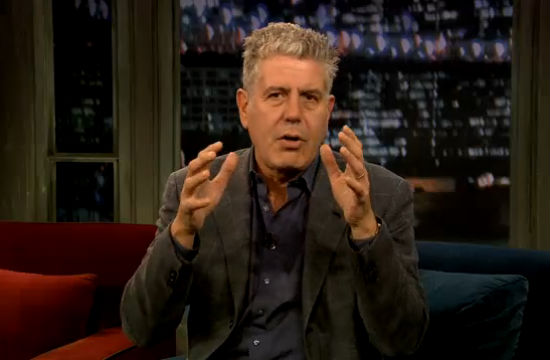 Everyone’s favorite snarky uncle stopped by Late Night With Jimmy Fallon last night to dish on everything from his wife’s frightening MMA prowess to that upcoming episode of Parts Unknown shot in The Congo that we still await with bated breath. But Anthony Bourdain also shared tips for the novice traveler (or at least, the traveler not subsidized by CNN). His best advice for those seeking restaurant recommendations abroad?