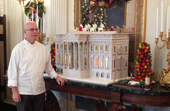 See that ginormous model of the White House, next to Executive Pastry Chef Bill Yosses? That’s really a disguised afikoman, the piece of matzoh that is traditionally hidden during the seder and must be found by children during Passover. Why is this Christmas treat now a Jewish bread? Because Yosses wanted it so, that’s why.