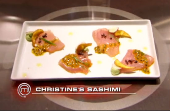 Ultimately, Monty made the worst dish (and hacked her poor tuna beyond recognition) and was sent home. Becky, Josh, Christine, and Frank are now MasterChef’s final four. Check out Christine’s impressive sashimi below.