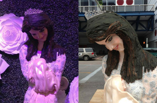 In honor of the new royal baby that clawed its way into existence, Who Made The Cake! owner and baker to the stars Nadine Moon created this life-sized version of Kate Middleton holding what we assume is a baby, and not a shamanistic totem that contains the baby’s life-essence to be raised by a hobgoblin.