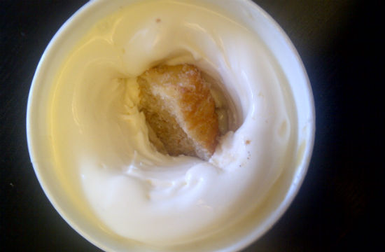 We bought this thing because it was for charity. It was super delicious. It tasted like churro ice cream, and there was a nice little swirl of butterscotch at the bottom.