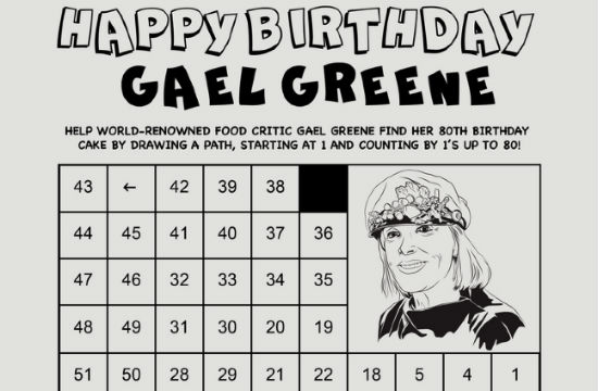 Coloring for a good cause! Go do this therapeutic Gael Greene birthday maze right now. It’s timely and topical!