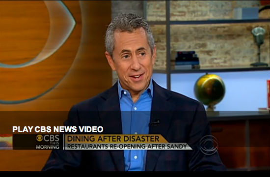 …Uhh, he’s trying, Charlie. Danny Meyer stopped by CBS This Morning today to discuss the lasting effects of Hurricane Sandy on the restaurant industry in New York, and explain precisely why the storm was so devastating to the restaurant industry in particular.