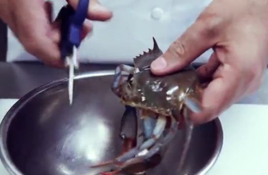 WATCH: Eric Ripert Coolly Snips Off The Little Faces Of Soft-Shell Crabs