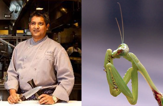 Decades from now, when humanity has been reduced to small populations hiding in catacombs deep beneath the earth from the Praying Mantii Overlords, they will think back to that fateful, accursed day that marked the beginning of the end: the day that Floyd Cardoz, former chef at Tabla and currently of the North End Grill, bought his first praying mantis cocoon.