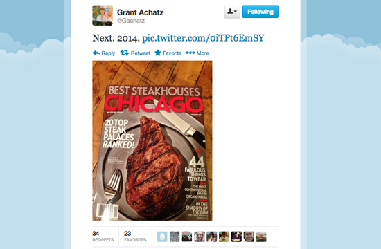 The internet believes this is an obvious sign that Achatz and crew will do a steakhouse-themed menu for their ADD restaurant NEXT, but what if he’s actually doing something else? What if this is just misdirection on Achatz’s part? What if the new NEXT menu is actually, we dunno, inspired by magazines? What if he’s really developing edible paper that tastes like steaks?