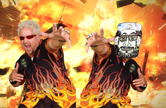 At some point, though, Will Ferrell has to pop in as his Jamie Oliver character and challenge Guy Fieri to some sort of Talladega Nights-style challenge. (We know manliness, too.)