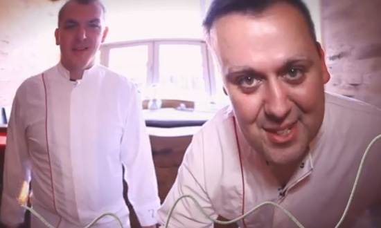 Last month, Homaro Cantu of Chicago’s Moto restaurant announced he had recently signed a multi-season deal with a “major” TV network. Today, the chef’s twitter feed directs us to this sneak peek posted on YouTube. Described as “Restaurant Impossible meets Anthony Bourdain’s No Reservations”, the clip features Cantu, his partner Trevor Rose-Hamblin and a nicely CGI-ed smoldering fuse, and touts their team’s adventures in re-doing their restaurant menu every six weeks. Can their staff keep up? We’ll have to wait and see.