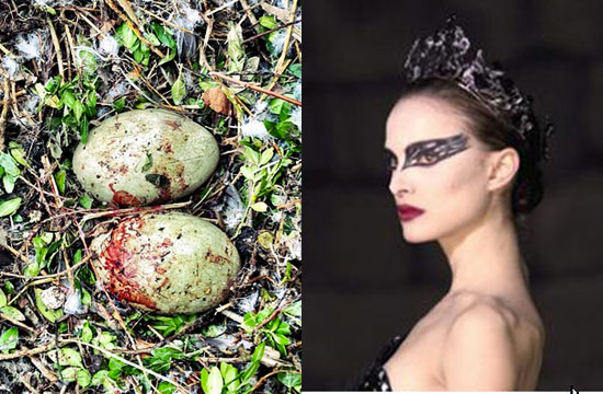 Since we’d watched the Oscars last night, we immediately wondered whether the black swan had a psychotic break and imagined that it was being stalked by an evil double, and, in an unrelenting drive to achieve perfection in ballet, tried to murder all of her competitors and colleagues…only to discover that she had, in a metaphorical twist, murdered herself.