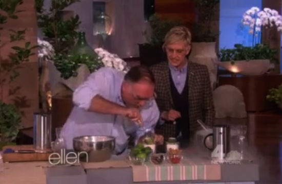 But Ellen hovered between even-keeled and killer deadpan for the whole segment, letting Jose bounce around his liquid nitrogen caipirinha and 20-vegetable friend rice dish (a demo of too many vegetables) like the perfect comedy partner that she is.