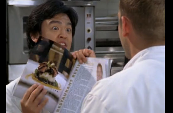 On this week’s episode of Kitchen Confidential, we open with the employees of Nolita gleefully celebrating a dish of Jack Bourdain’s (Bradley Cooper) which has landed a coveted spot in the pages of Food and Wine Magazine. The only problem? It’s not Jack’s sesame-crusted yellowfin tuna with morels and beluga caviar recipe. It’s Teddy’s (John Cho). In what proves not to be Teddy and Jack’s first rodeo, Nolita’s Fish Master Flex becomes deeply offended that his head chef took credit for his dish, and Jack mishandles his bruised ego, only making the situation worse. So Teddy quits for what is, according to Seth (Nicholas Brendon) and Steven (Owain Yeoman), the seventeenth time.