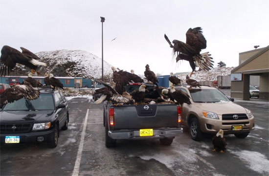 Last Call: Police Break Up Swarm Of Eagles Attacking Truck Full Of Raw Salmon, Three Guesses As To Where This Happened