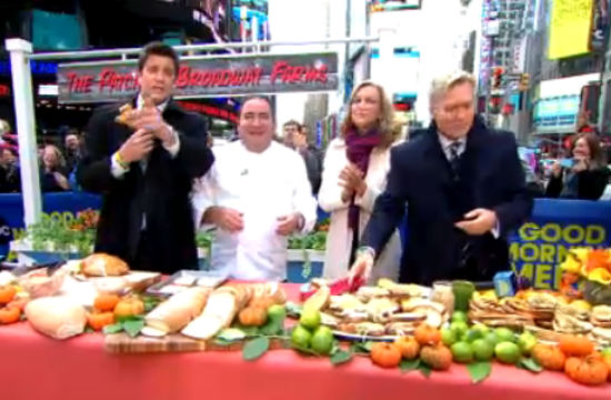Good Morning America: Emeril Lagasse went the more traditional turkey sandwich route, but he gets points for making an awesome accompanying slore (that’s “slaw” in Pigeon Lagasse).