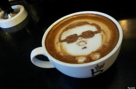 Huffington Post via Reddit: Korean rap sensation PSY gets depicted coffee style. Please do not attempt to horse dance while holding this cappuccino.