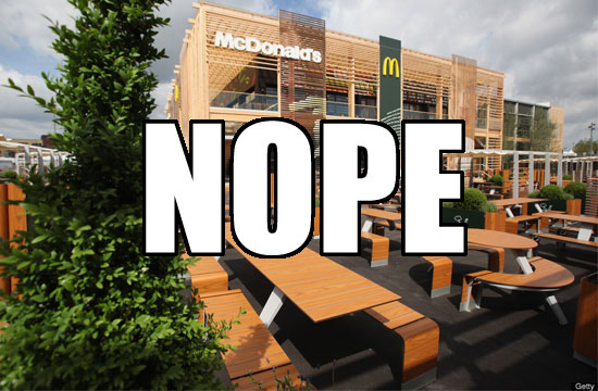 Poor International Olympic Committee! All it wants to do is hold a really, really cool London Olympic Games, but everyone hates on their decisions! Like these bad logos, or, now, the London Assembly‘s recent call for a ban on fast food companies sponsoring the Olympics. And right after the IOC built the world’s largest McDonalds inside the Olympic Park, too. Can you say awkward?