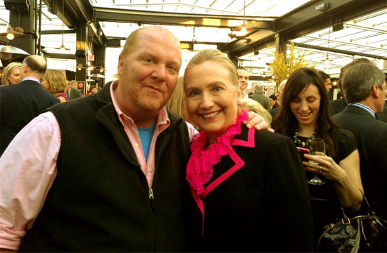 Mario Batali Hangs Out With Fellow Scrunchie Enthusiast Hillary Clinton