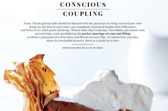 Every Thanksgiving table should be blessed with the presence of a long-married pair who bring out the best in each other, are completely enamored despite their differences, and leave every other guest thinking, I’ll have what they’re having. Our holiday pies honor such so there’s a pleasant mix of textures and flavors in every bite. No matter how you slice partnerships, each spotlighting the perfect marriage of crust and filling these six irresistible desserts, there is a whole lot to love.