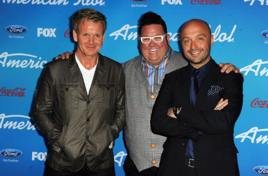 Fox seems to be treating its MasterChef judges reeeally well. Aside from letting them pretend they were McKinley High students for a day on the set of Glee, Fox invited Gordon Ramsay, Joe Bastianich, and Graham Elliot to turn it out at the American Idol Meet The Finalists party last night. Naturally, they stomped the red carpet in all their awkward ferocity, and promptly played a round of Who’s Simon/Paula/Randy on Twitter. Future Idol judges, anyone? It can’t possibly be any more ridiculous than the Nikki/Mariah debacle that is Season 12.