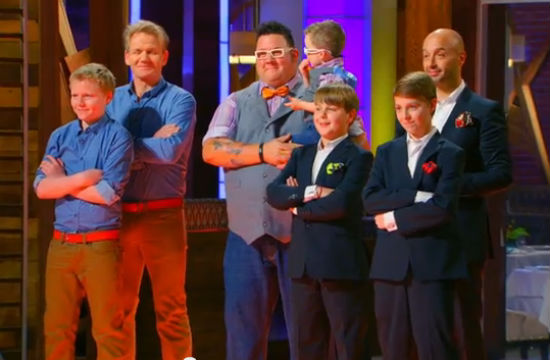 Perhaps in an effort to jazz us up for next season’s MasterChef Junior, Joe Bastianich, Graham Elliot, and Gordon Ramsay dressed their sons up like tiny mini-mes, and let them guest judge the Mystery Box Challenge. It’s basically the cutest thing ever. And all the child cuteness age-groups were represented! Graham’s son is still teeny enough to be baby-cute, Joe’s sons are in their lovable pre-teen epic brat phase, and Gordon’s son is a budding lothario! Check out a sneak peek of their appearance below, and tune in to Fox tonight at 8pm for a two-hour MasterChef.