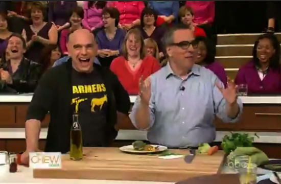Porter House New York executive chef and chef/director of Windows On the World on 9/11 Michael Lomonaco guest hosted The Chew today in place of Mario Batali on for an episode entitled “Restaurant Secrets.” In one segment, Carla Hall couldn’t help but ask him and Michael Symon, as restaurant chefs, what their biggest diner pet peeves were. As you can imagine, Michael S. got quite worked up over the way patrons specify steak doneness, while Michael L. tried very hard to protect the identity of a certain celeb he was forced to lock in the wine cellar of his resto for 45 minutes one time as a result of over-imbibing. Of course, he spills the name eventually, but you’ll have to watch the clip to find out who it was!