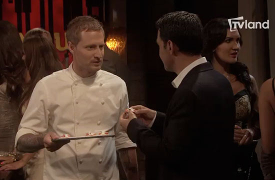 Tonight, Michael Voltaggio comes back to television, years after he won the top prize on Top Chef! Only this time, he’s getting into wacky hijinks and hilarious brouhahas with the cast of TVLand’s The Exes. In a situation that was clearly designed to make us write the above headline, he gets stalked by the chef-loving main character (played by David Alan Basche) and will hopefully have more things to do with the awesome Donald Faison, who is always, always, always going to hold a special place in the author’s heart for playing Turk on Scrubs.