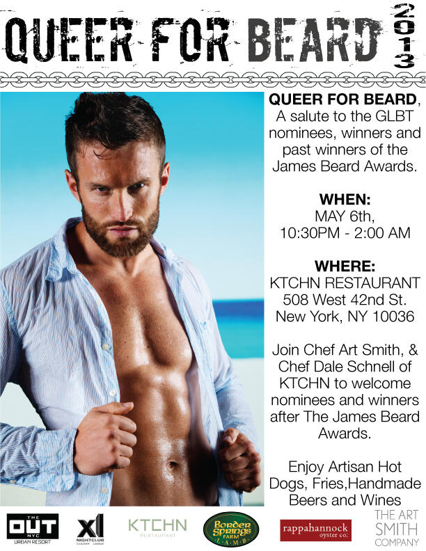 The 2013 James Beard Awards are fast approaching, and, as promised when we first got the scoop that Art Smith was organizing a queer party in honor of the Foundation’s LGBT nominees and winners, we’ve got your official invite for Queer For Beard!
