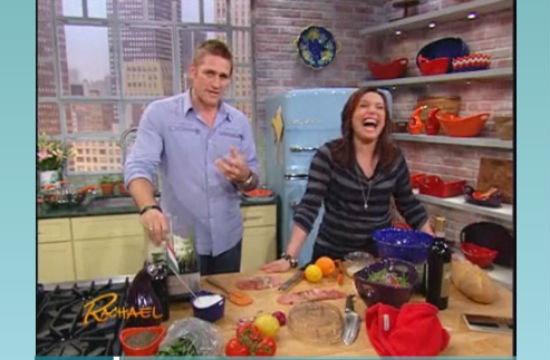 Rachael Ray had Around the World in 80 Plates host Curtis Stone on her talk show to recreate an international cooking challenge, and apparently, playing with your food is okay in Rachael’s book (although Curtis barely holds his tongue when Rachael claims it’s okay to make a mess while cooking). Plenty of ladies out there used to force their Barbies to make out with each other in a pre-pubescent, slightly confused sexual frenzy…or at least we used to back in the day before kids learned about sex from the internet. Anyway. Rachael Ray opts, instead, to force foods to make out with each other. While normal chefs use phrases like “melding flavors,” Rachael very technically explains how using starchy pasta water in a sauce “makes the sauce make out with the spaghetti.” Pesto sauce and gremolata sauce also make out in this clip to make a sauce baby. Note: Not how babies are actually made, kids.