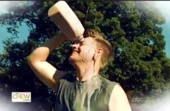Check out The Chew’s clip of Richard training below. Bonus: his post-race reward is chocolate milk…poured over his face as a victory refresher.