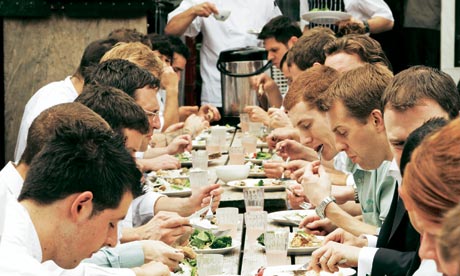 The best part about staff meals: no one cares about presentation and they’re made with whatever available (i.e. cheap) ingredients are on hand that night. So even us impoverished writers can make Fergus Henderson’s curried rice with chickpeas, which require things that cost no dollars (though we’ll probably have to save up for real Wagyu beef for Anita Lo’s bibimbap.)
