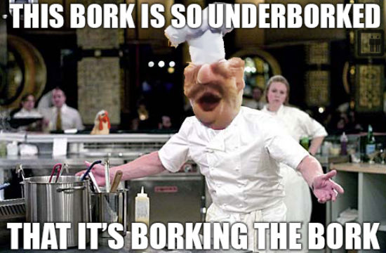 In the past we called out the Swedish Chef for being among the most unconvincing fictional chefs out there. Today, The Internet is making us reconsider that stance with this spot-on Swedish Chef/Gordon Ramsay mash-up from the Potatofarmgirl Tumblr. This incarnation of Ramsay is just as confusing as the human version of Ramsay, and considerably funnier. Between getting sued for $75K, his feuding with Bobby Flay over Twitter, and his feuding with basically everyone ever, do we even still understand what he’s saying yelling anymore? Sounds like ‘bork’ to us.
