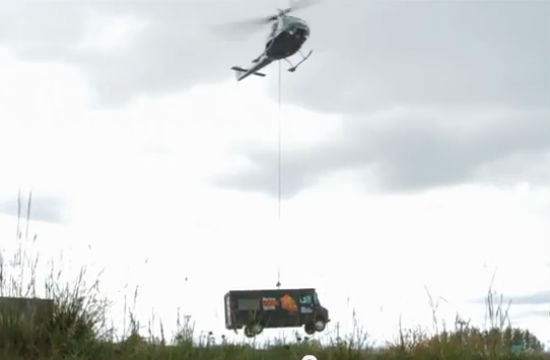But, since they were clearly planning to document their stunt in order to show off what benevolent gods run Taco Bell, they had to go all out. Behold the food truck they let dangle from a helicopter for a 350-mile flight, only to touch it down safely for the sodium-starved folks of Bethel!