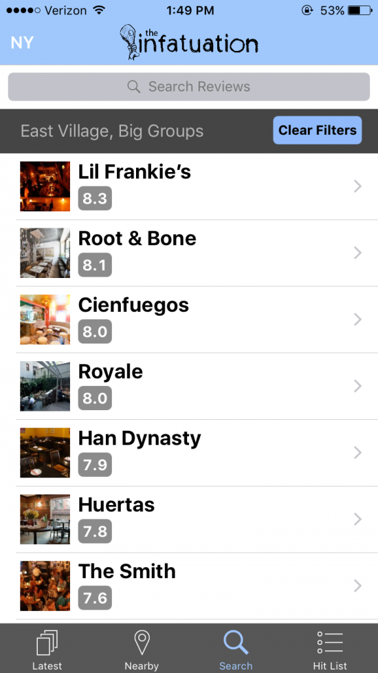 The Infatuation created the restaurant reviews that sound like if your friend was telling you where to eat. It has filters you actually want to use, like “good for groups,” and “serious takeout operation,” and has restaurants you actually want/can afford to eat at.
